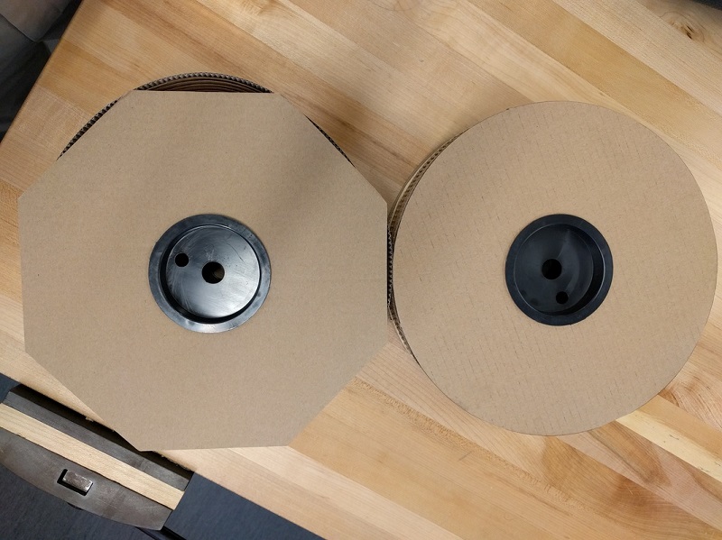 The following Thursday, the school where I work received four reels of resistors. (That is enough to serve us for a decade, as far as we can tell.) However, I could envision these long rolls being knocked down and unrolling all over the place. I decided to do some 1.5D work to enclose the reels. This was not only a good exercise in designing for 1.5D, but also a further exploration of designing with arrays. Working out the kinks took a while, but it eventually came together just fine.
