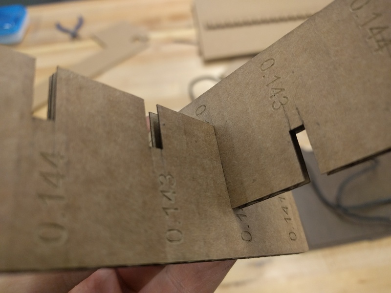 - make lasercutter test part(s), varying slot dimensions using parametric functions, testing your laser kerf & cutting settings (group project)