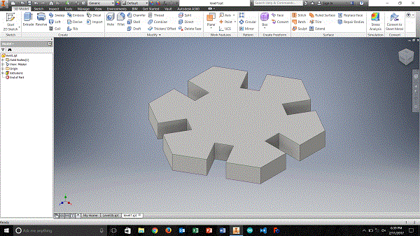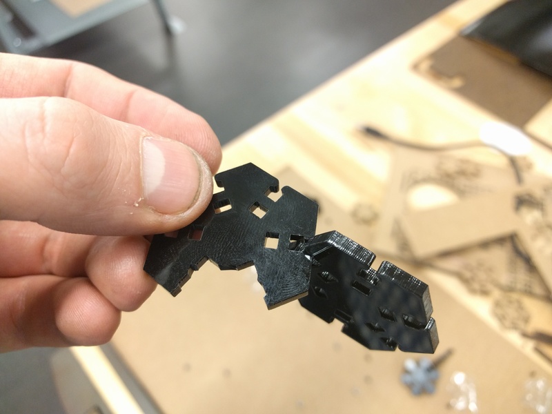 The first roadblock was the design software. I knew it didn’t like curves, but I underestimated this effect. As I tried to work with circular pieces, Inventor would regularly not let me extrude in the ways that I desired. I checked to make sure I did not have ‘open edges’ to shapes. And even consulted with the CAD teacher and one of his students from the high school where I teach. No one was sure why Inventor had such a hard time reconciling the curves with straight lines. So I moved on. By the end of Friday I had shifted my focus to hexagonal shapes as the basis for my kit, and things were going better.