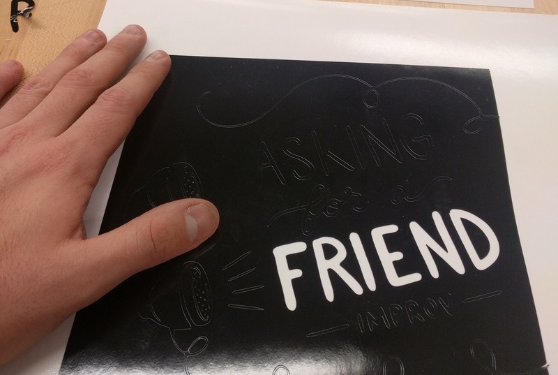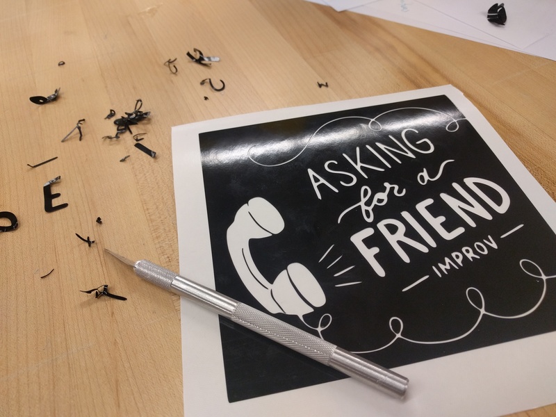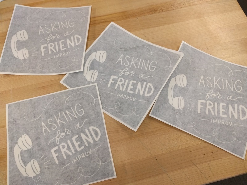 My girlfriend is in an Improv Troop called “Asking for a Friend,” as described on my About Me page. She and three friends play as often as they can, and recently designed a troop logo. (One of the troop members is a professional artist, who made the design.) I was given the troop logo as a jpeg. As you can see, it has lots of contrast and fun detail. Very nice artistic work, but not in any way optimized to be a sticker. So here goes the process…
