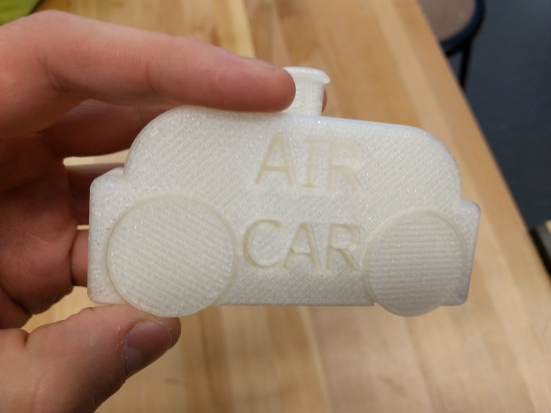 The third revision was sliced and printed. And it failed. It turns out that not all slicers are configured equally. At least one computer in the school’s lab has very strange settings on the Simplify 3D software. Every edge is printed outside of the model design. In trying to free the wheels from their supports, I broke one off. It appeared that the axle had fused to the car body. And now that I took a closer look, it also appeared that the text I had embossed in the side of the car had ‘swelled shut’ as a result of these strange Simplify 3D settings.