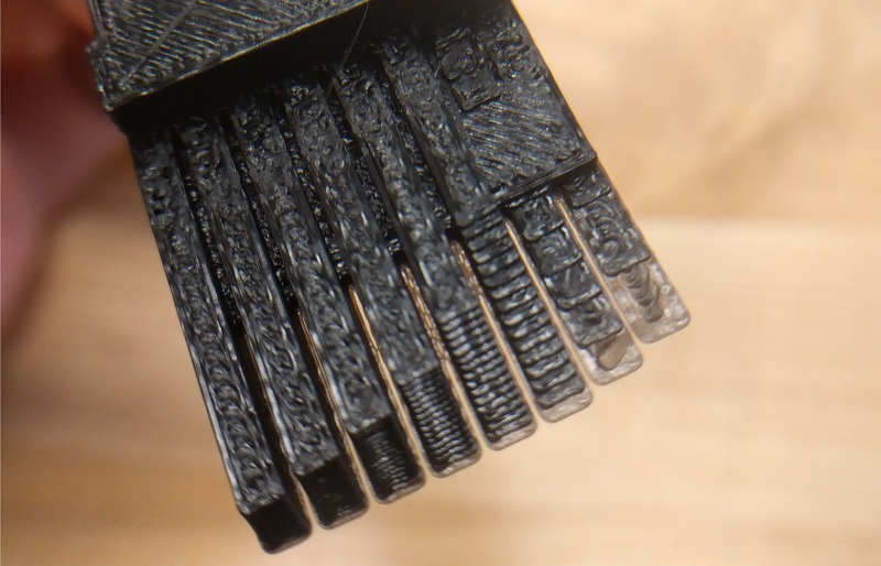 The wall thickness would be tested by modeling walls of decreasing sizes – each half the width of the previous. The test print will show at what thickness the slicer and printer will not faithfully produce the model.