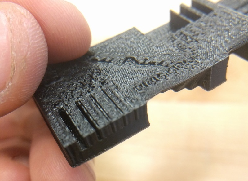Again, comparing the model to print is useful for seeing what overhung angles are practically possible. In these images, it is possible to evaluate the discrete angled sections and the rounded cutaway.