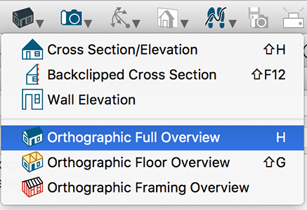 To display the model in 3D, select Orthographic Full Overview from the rendering icon.