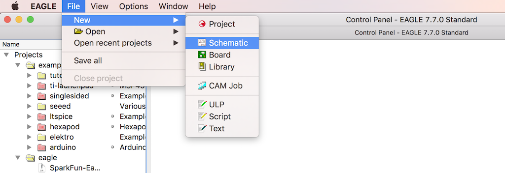 Next, you start by opening a new schematic with the command sequence File - New - Schematic.