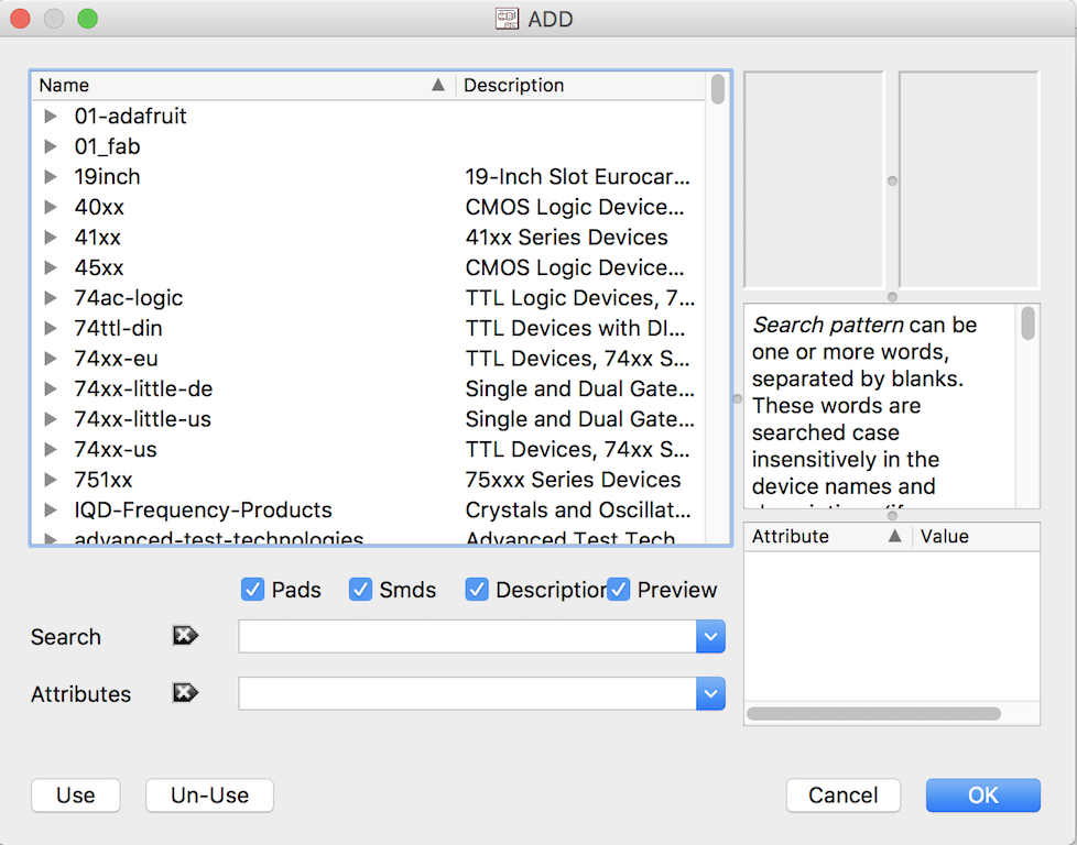 After you added the Fabacademy compoent library, you are ready to add components.