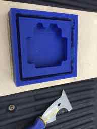 My final project includes packaging my device into a cover which can be adapted to an ordinary junction box. I thought it might be helpful to start 3-D modeling my package and design a quick-prototype utilizing closed cell foam, machine it on a cnc router, and cast the model using Smooth-on Vytaflex-20 urethane epoxy. I use Smooth-on often to make "skins" or stamps for decorative concrete work. It is an impressive material.