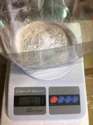 Directions call for mixing water to material by weight. Put material on scale and figure correct amount of water.