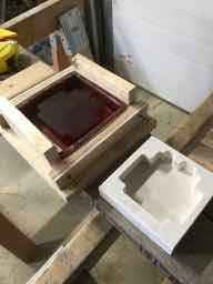 I revised the design and eliminated the 1/2" diameter islands and cut just the rough pass. The mold came out fine. Next, pour the Smooth-on and let it cure for 24 hous.