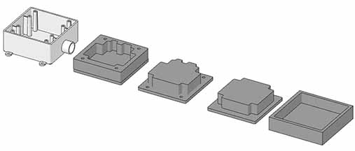 First I started by measuring a typical 4" junction box, drawing out the box, and then designing my part as well as it's mirror image mate.