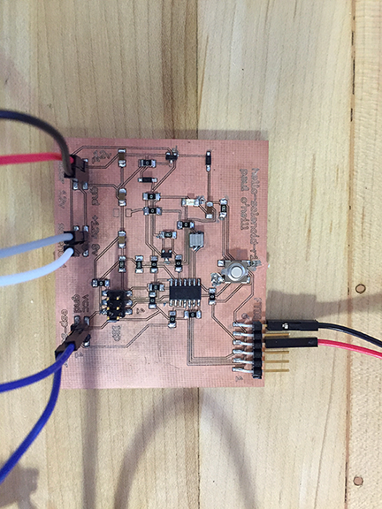 I further discussed with my instructor, Chris Rohal, my final project and how I planned on chaining more than one board together, and also the all-in-one board concept. Chris seemed to think I had a good concept, so I proceeded on fabrication. The concept is to utilize the hello-output design from earlier so it can control and power a solenoid valve. I would also need to open up an input port on the ATTiny44 which would allow my "Wifi/sensor board" to communicate with. I decided to name the two boards "hello-solenoid" and "hello-nodeMCU". I ended up designing and making many versions of these boards. I program and tested the boards first with simple LED blink programs, and then I continued on to making connections between the two boards via a breadboard and a regulated power supply.