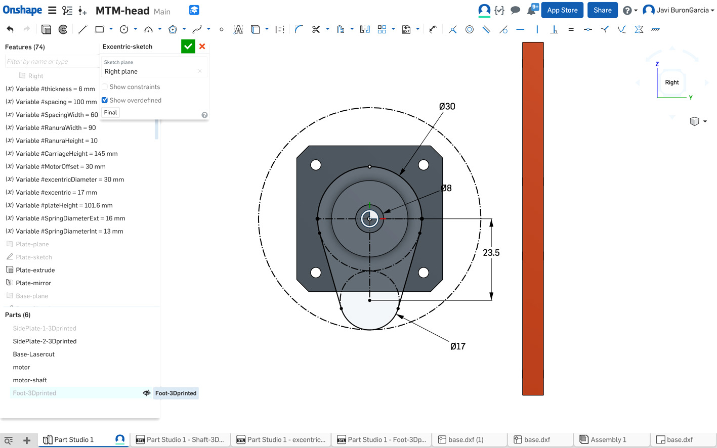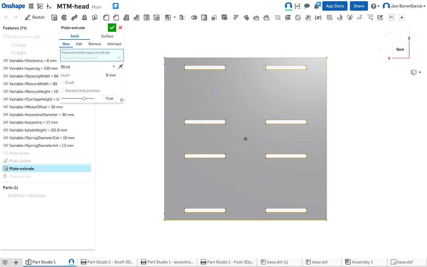 We have used Onshape for the header design as many dimensions are interrelated changing during the design process of the other components and the sourcing of additional materials and components. All header components have been designed to be 3D printed. Design is also adapted to MTM ball-screw stepper motor so no further modification is needed.