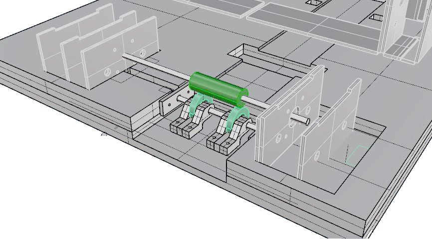 For the roller system we need a part that holds the rod where the bearings go, and allow the rotation of the bearings but not the lateral movement. We considered the diameters of the bearings and the roll adding a screw anchoring system ,we design and print the object in 3d.