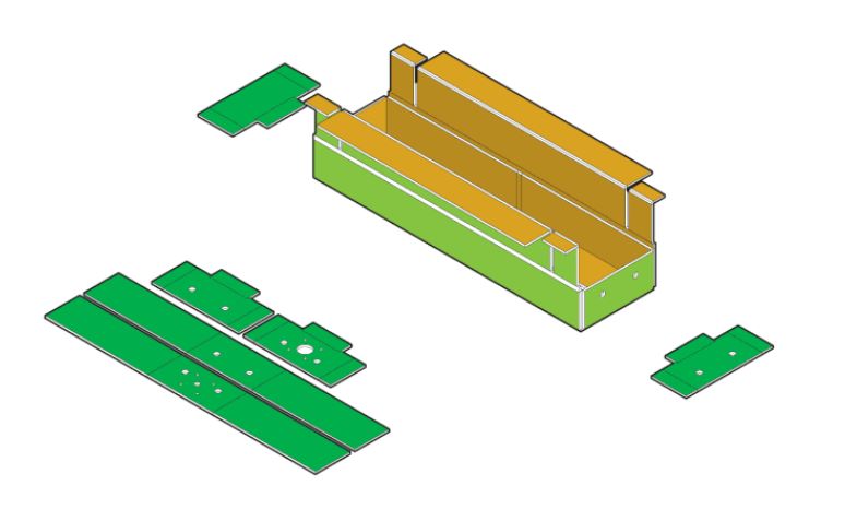 Our stage is a 3mm cardboard instead of the 4.04mm as the original design has. Checking the thickness of the design, we changed the original to a 3.66mm (where the 0.66mm lasercutter machine's kerf is included) and re-adapted the whole design to our machine.