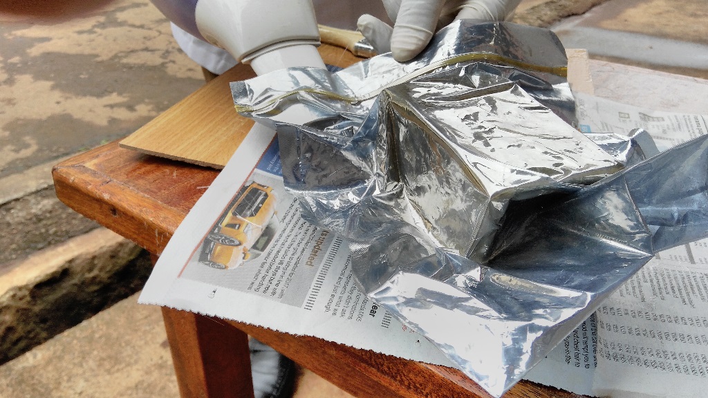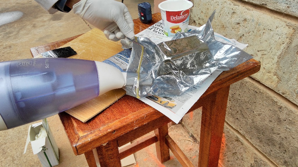 After this it was time to create a vacuum for the composite to form. I used a static bag for this purpose. To create a vacuumin the bag, I used a handheld vacuum cleaner