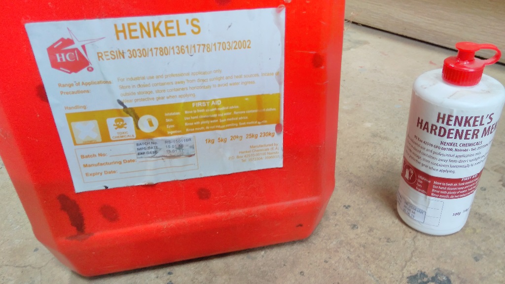 I then gathered what I needed to start the process. At the lab we had some Henkel's resin and Henkel's Hardener. We also had some Fibreglass.