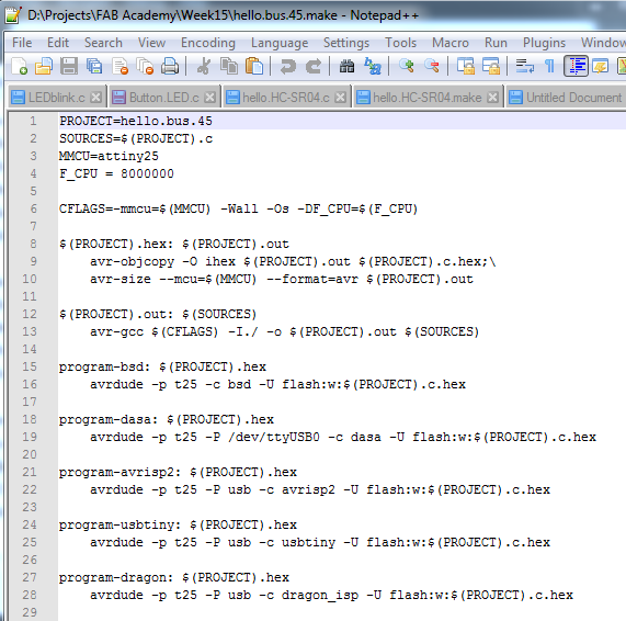 I downloaded the C code and the Make file and did some modifications on them before programming.
