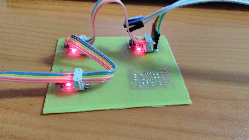 Here is a video showing how a asynchronous serial bus works. I have a bridge which has been connected to the computer hrough ftdi, and two node borads/processors which are connected to the bridge. Whenever I dial key No.0 on the computer, all the boards blink once but the bridge blinks 3 times.