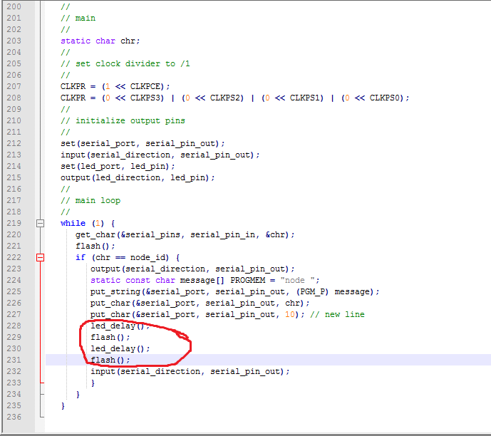 On the C program, I added another line to make the LEDs blink one extra time for a better visibility of the networking process.