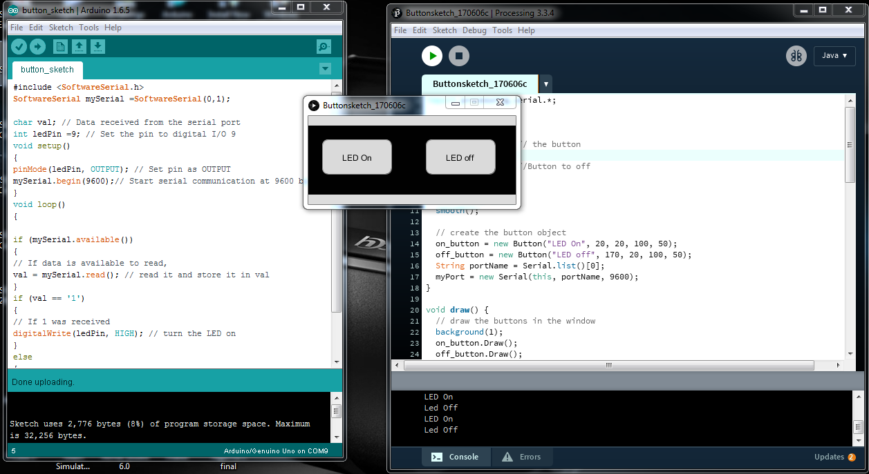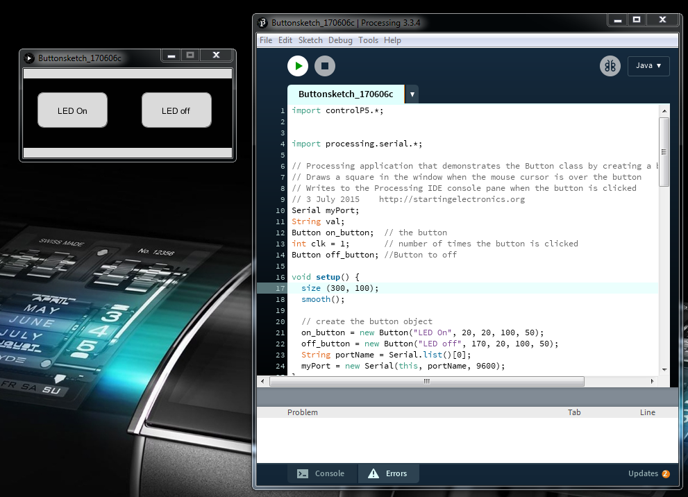 So I moved on to create an app that can turn an LED On and Off using processing