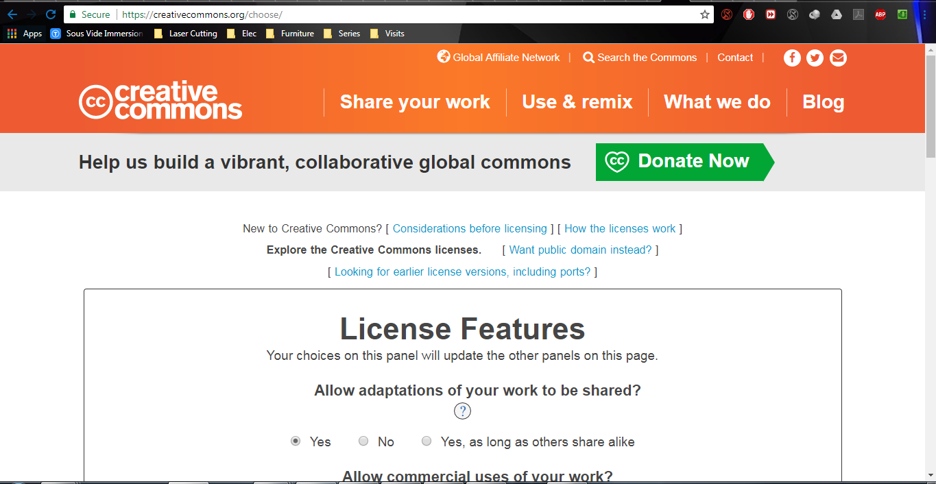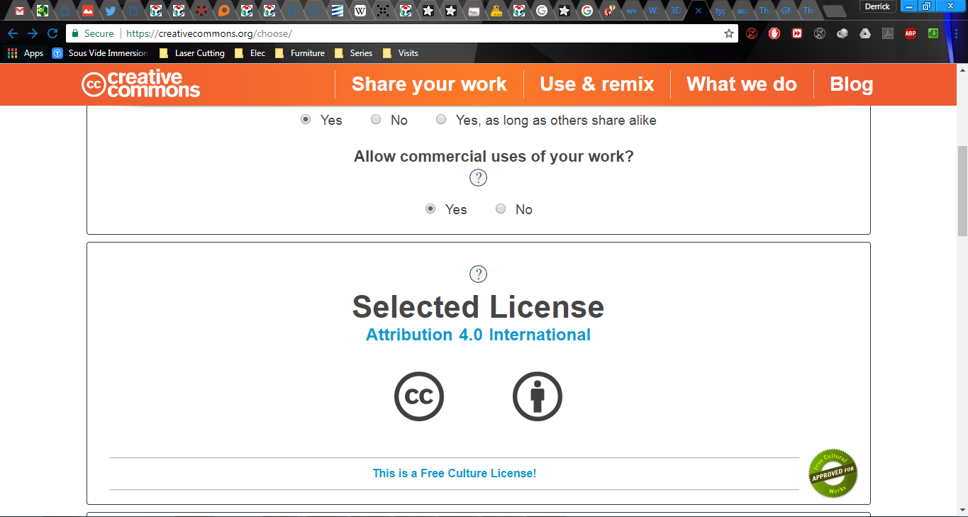 I first clicked on choices to allow adaptations of my final project to be shared. I also dont mind commercialization of the work for those who intend to, so I chose YES for that option