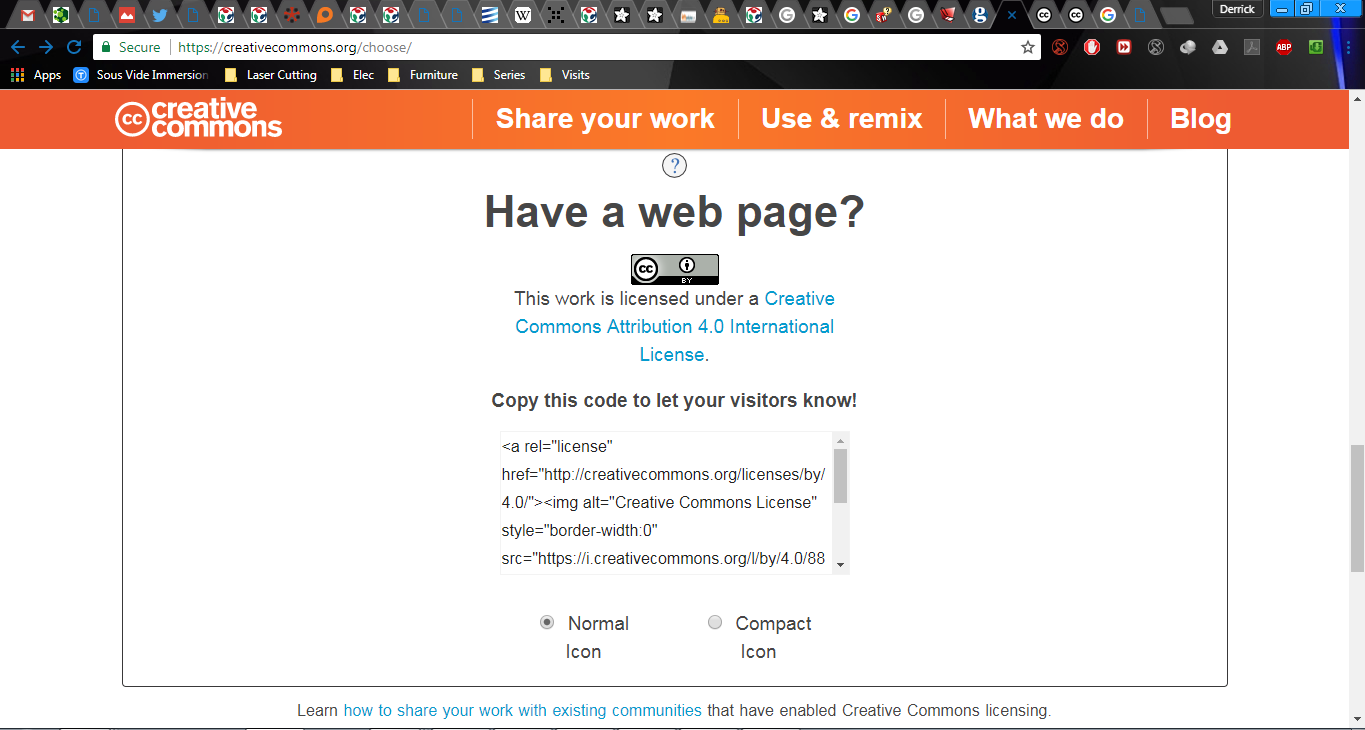 I chose to use the Creative Commons. So I logged into their Website to generate the licence.
