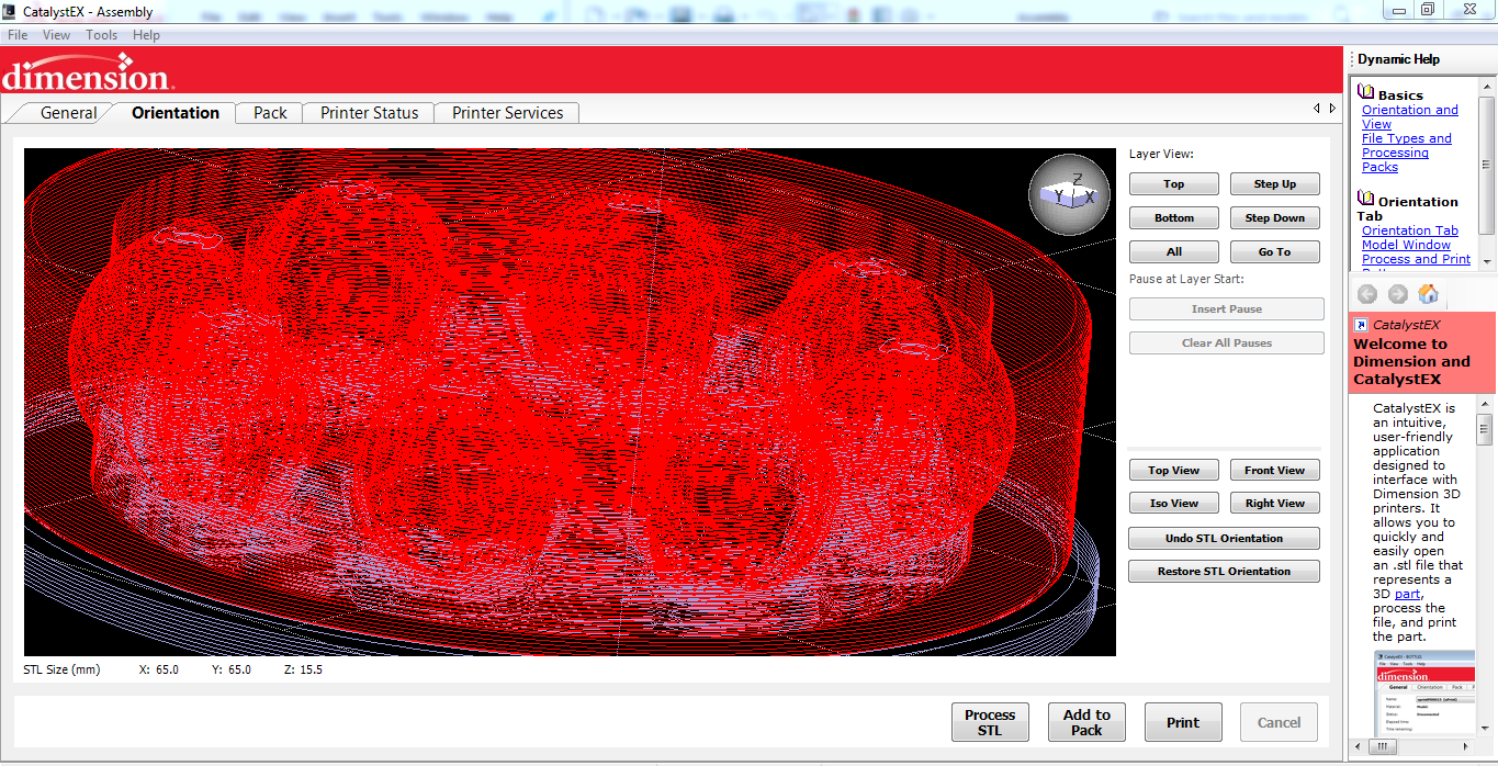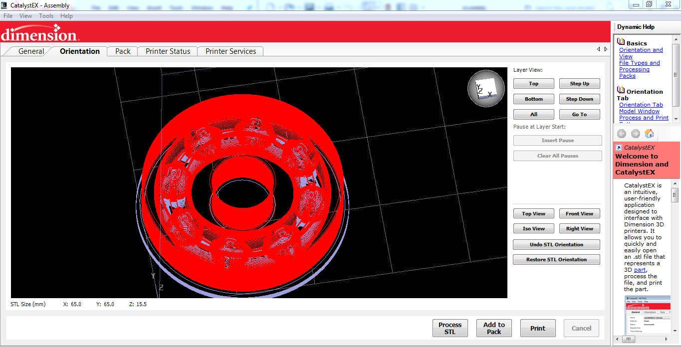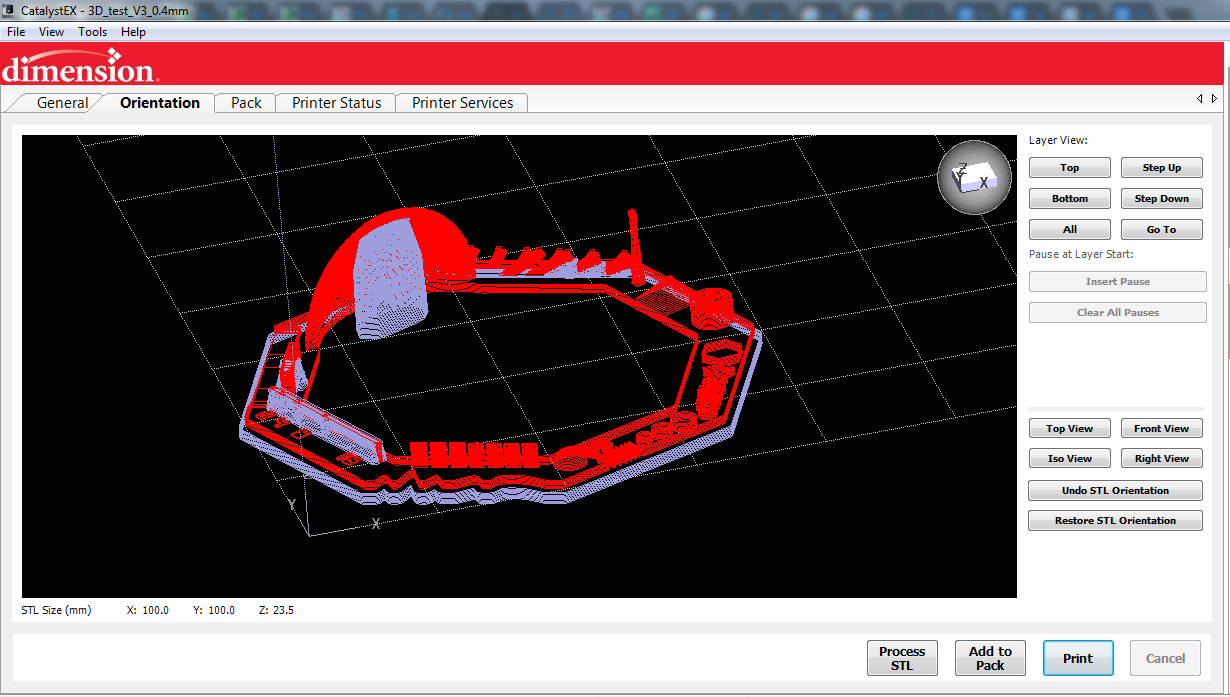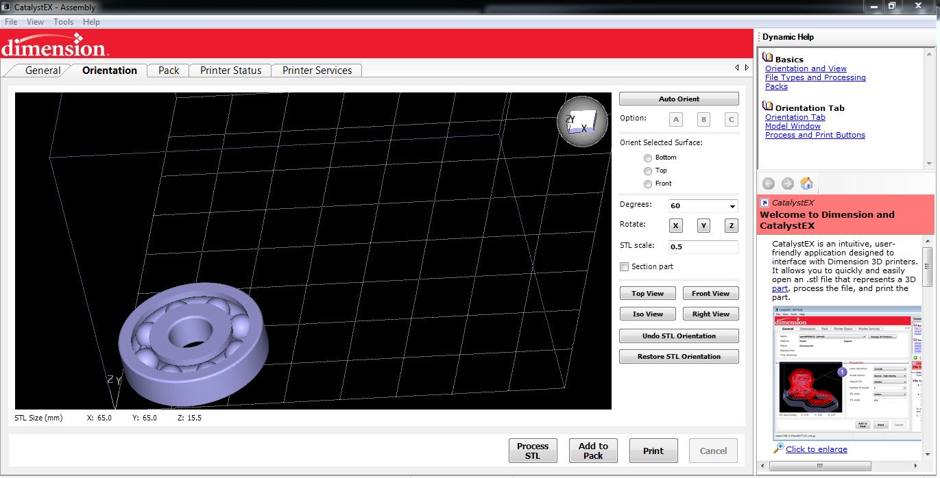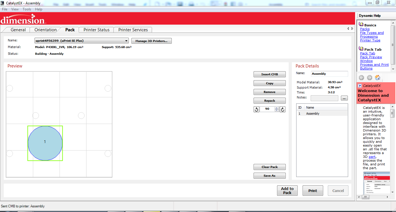 I saved the assemby as an STL file and on the 3D printer's CatalystEX software, I imported the file under FILE>OPEN STL..