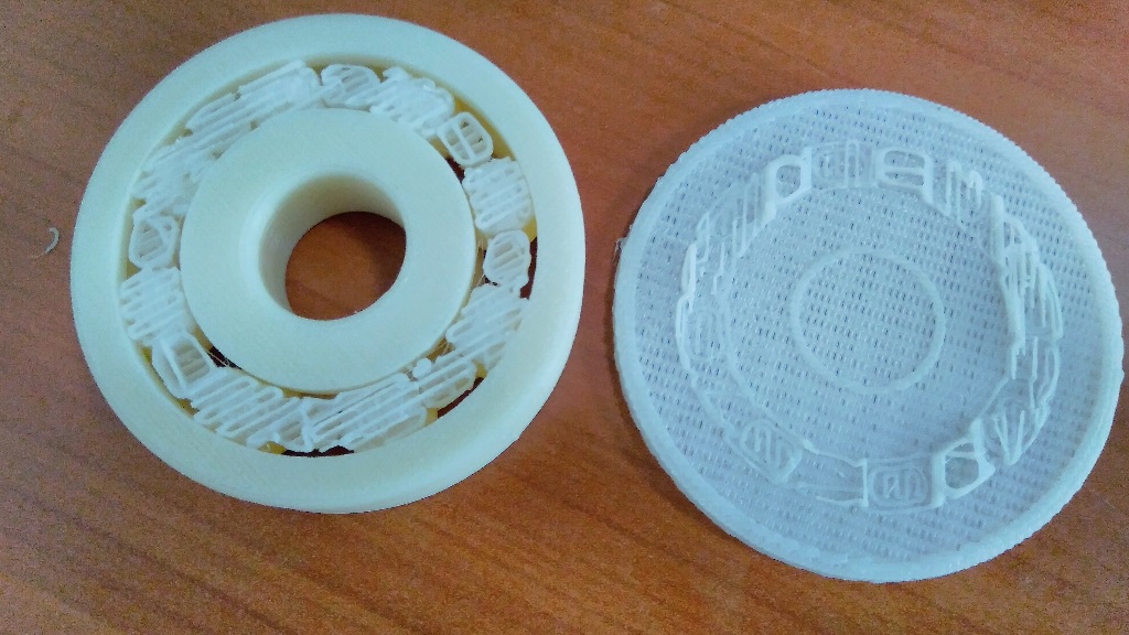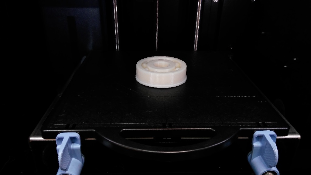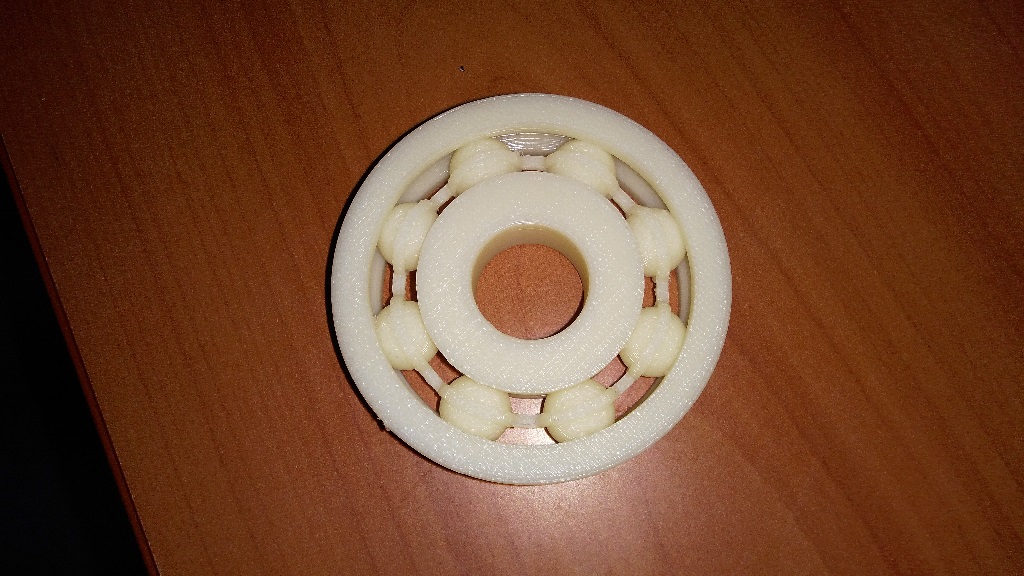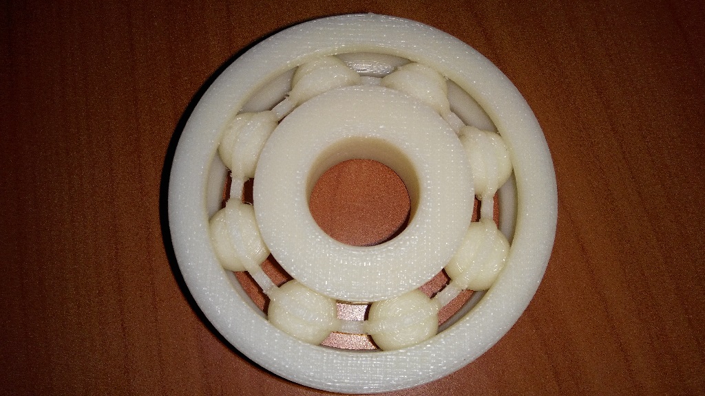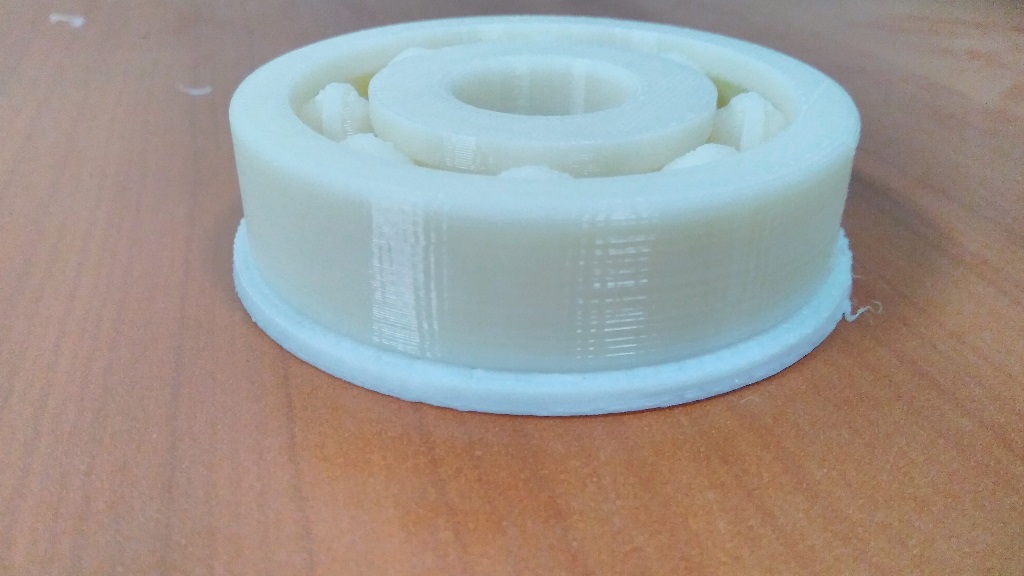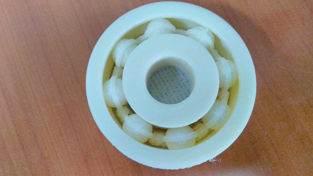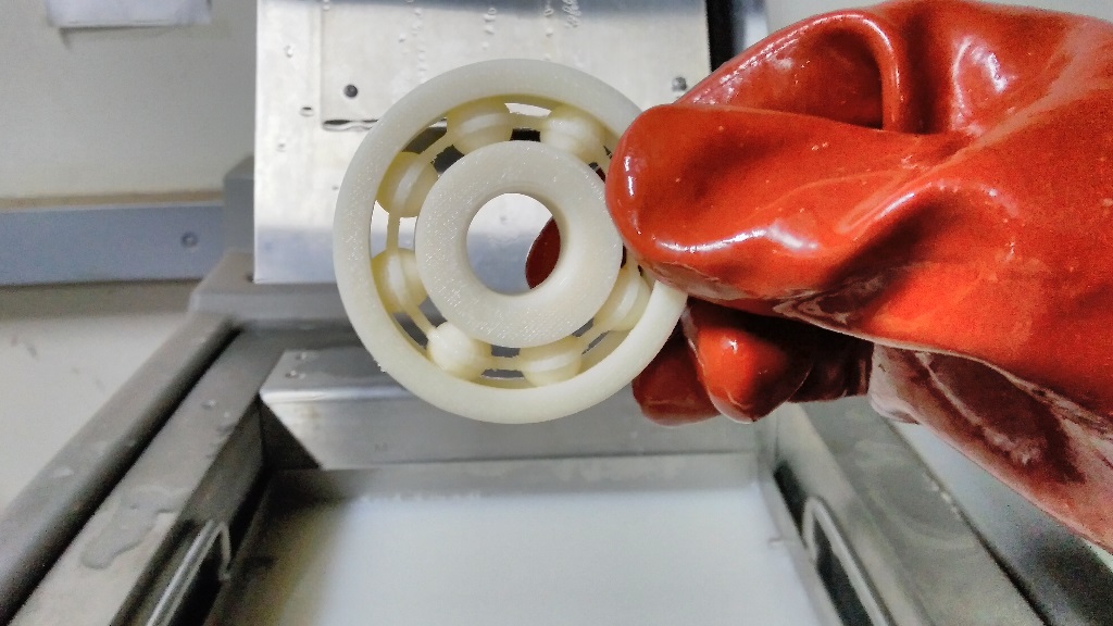 After a successful printing, I manually removed the support material at the bottom side of the part but there were some more support material left inside between the balls in the bearing.