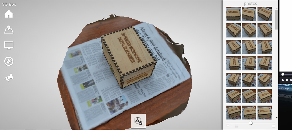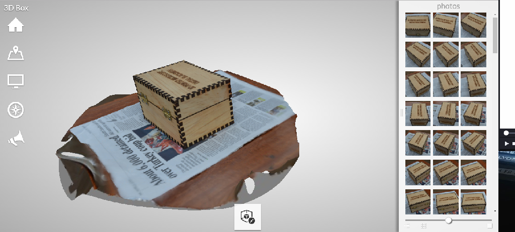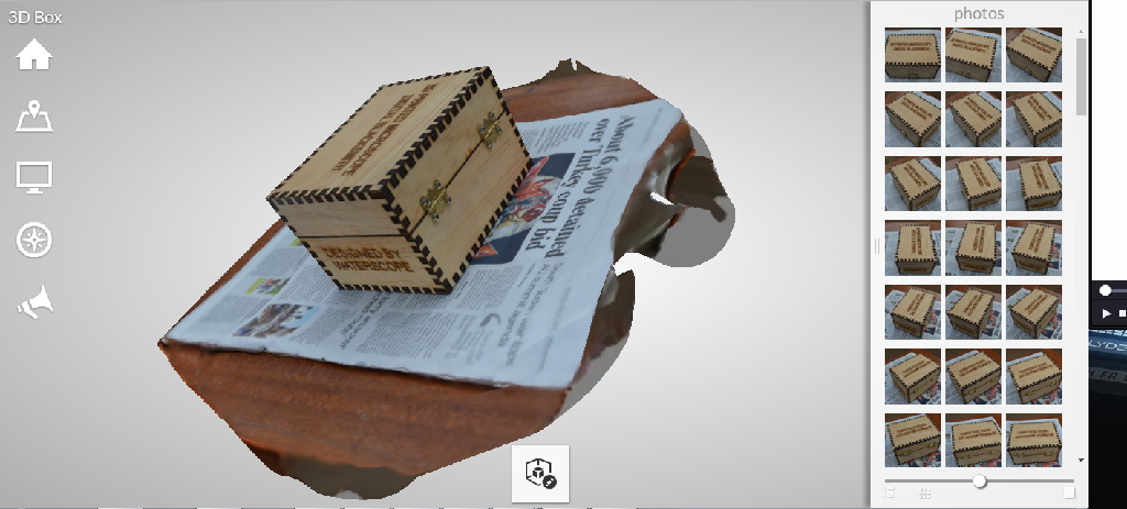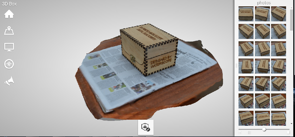 So I resorted to trying a different software and a different model with more dull colors. I downloaded Autodesk Recap and used it to process the images. I also stopped using my mobile phone camera (which I initially thought was pretty good by the way:) ...) and employed the work of a NIKON D3200 camera. It had a better lens that could focus well on a specific object as it captures the images. My model was a nice wooden box cut on the laser cutter. I took it outside the lab for suffient lighting and placed a newspaper under it then quickly got to work.
