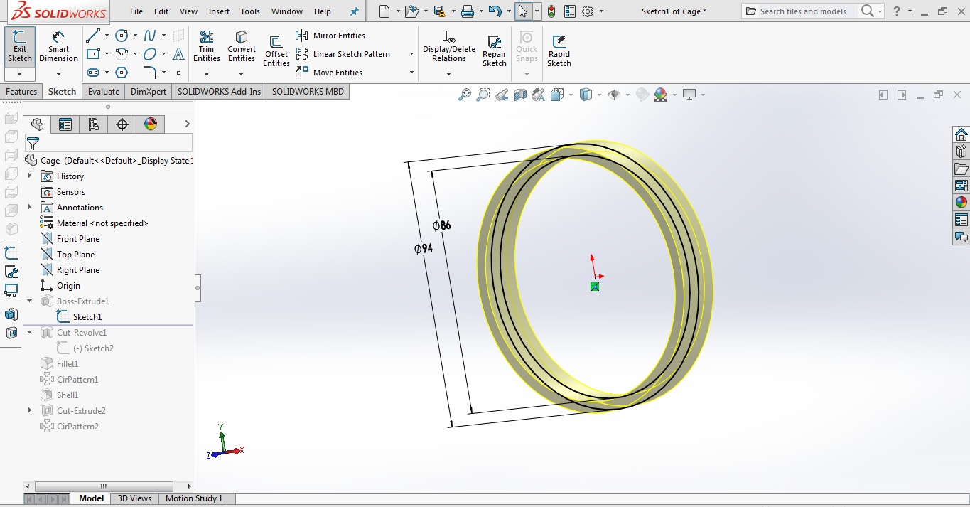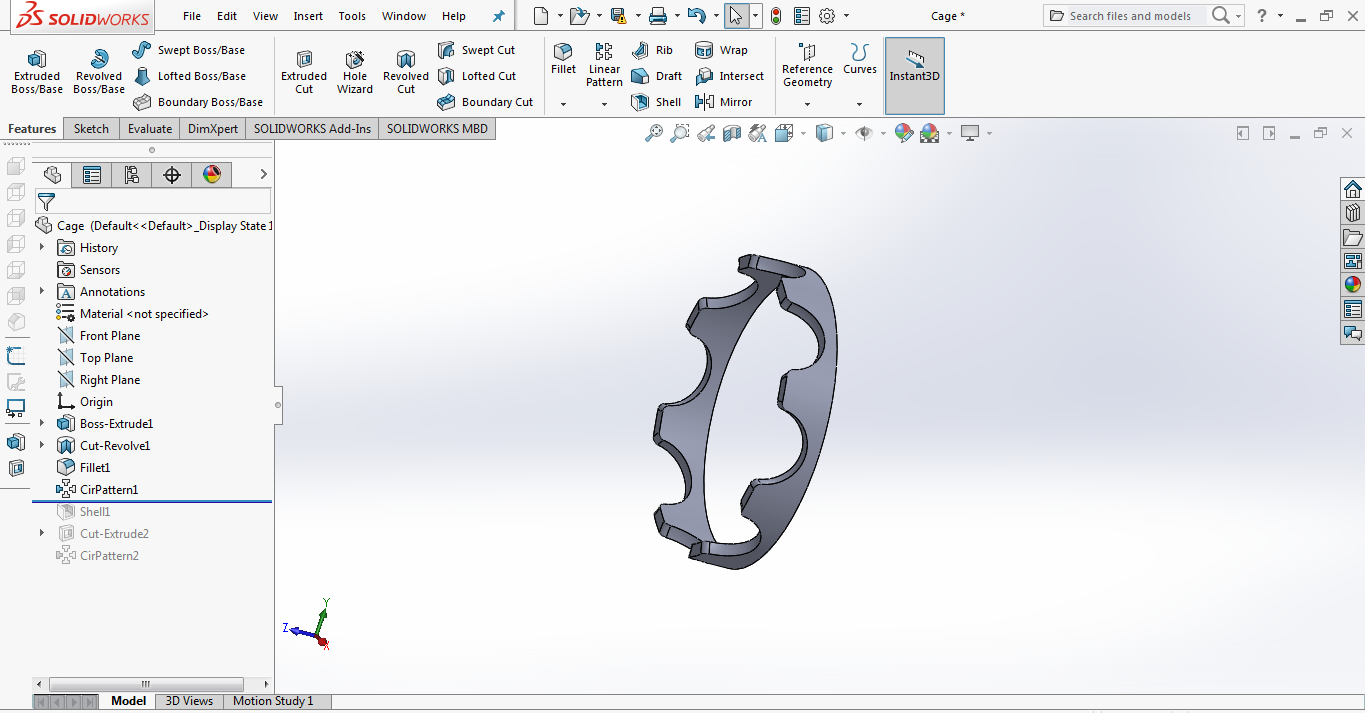 For this assignment I thought of a design that cannot be machined but only 3D printed. then I found this tutorial on youtube that explained how to design a ball bearing on solidworks. So I got down to work and designed this.