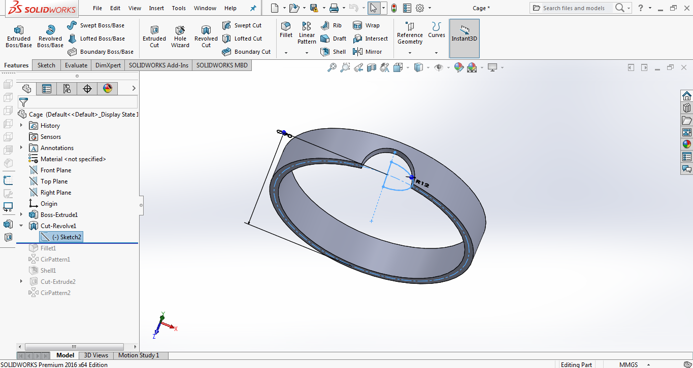I then dre a cross-sectional semi-circle on the ring and performed an etrude-cut to remove some semi-circular material from the ring