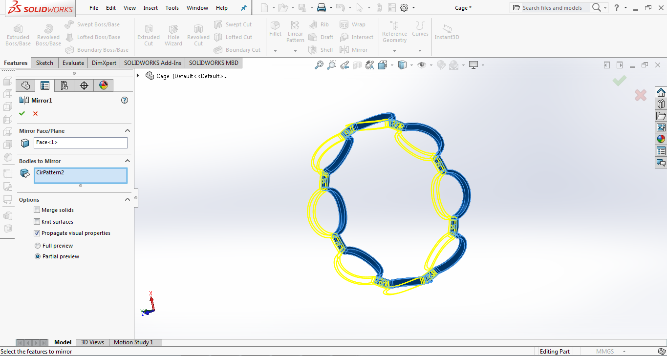 I was goonna need two cages in order to hold the balls in place from both side. So Instead of starting again from scratch, i used a simple fiture here....,MIRROR. That way i ended up with two cages.
