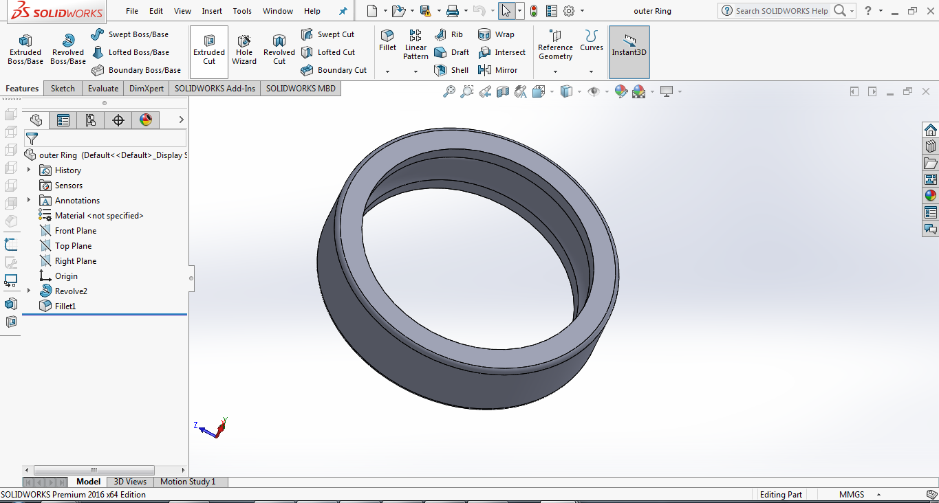 First I designed the outer ring and inner ring between which the balls were going to rotate.
