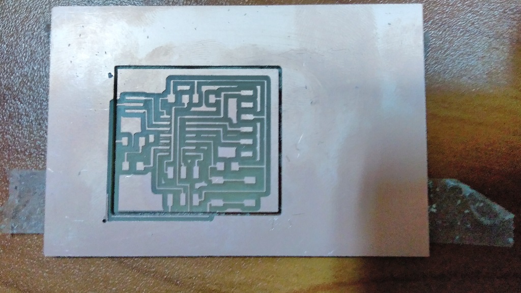 So I had to start milling a fresh circuit. This time, on uploading the interior image, I adjusted the Xmin and Ymin to 118.5mm and 38.5mm respectively to compensate for the error. This worked out well and I had my circuit well milled.