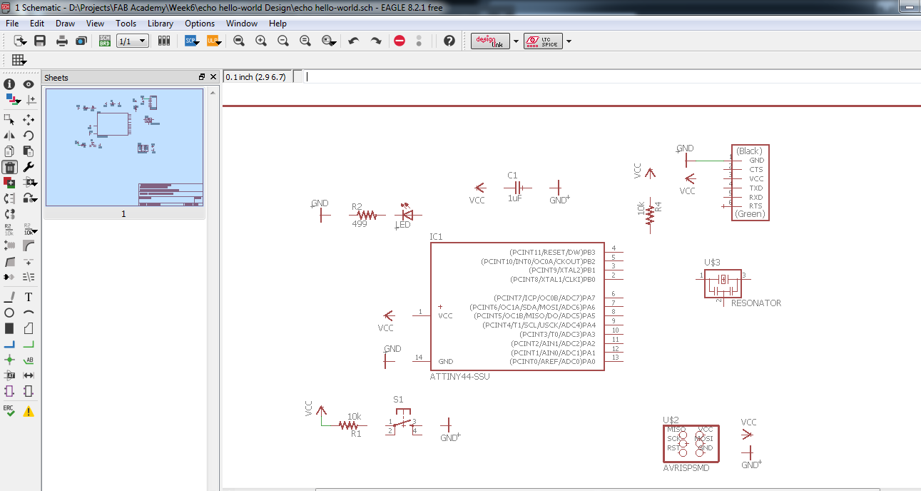 So I started by importing all the components that I needed including Vcc and GND into my working space.