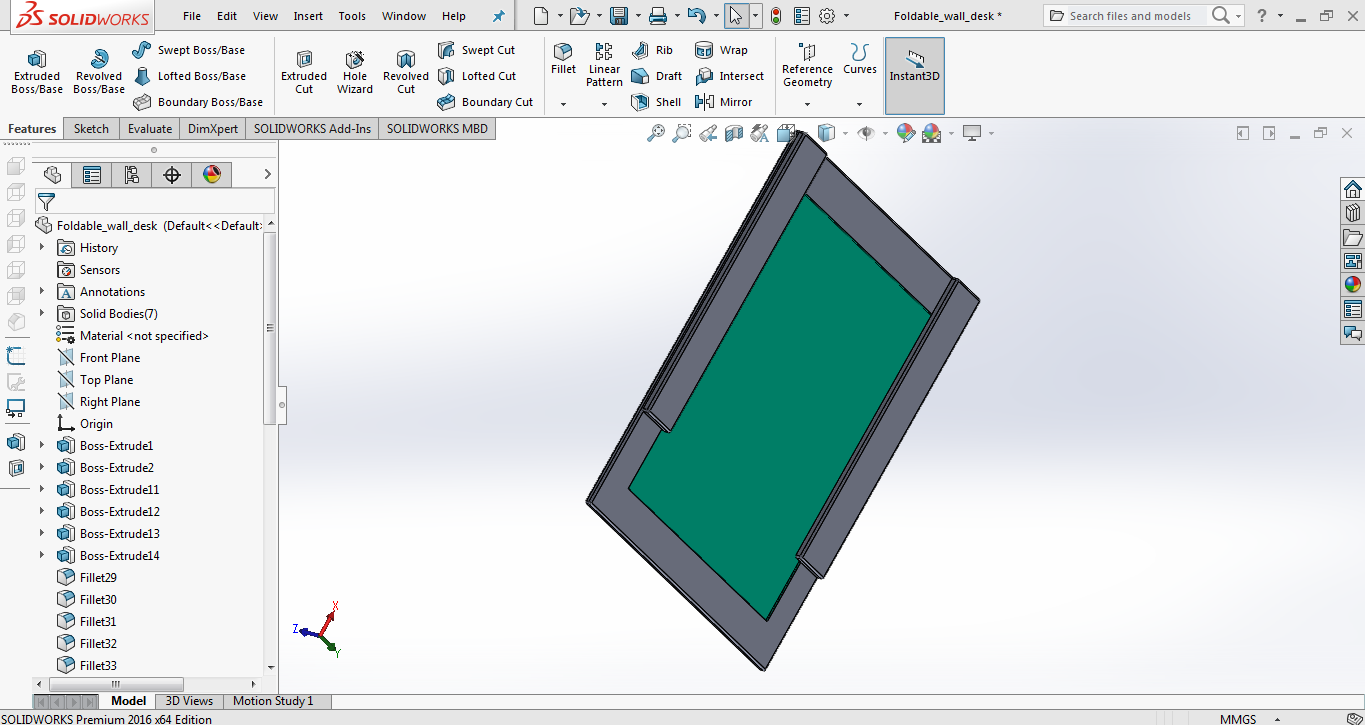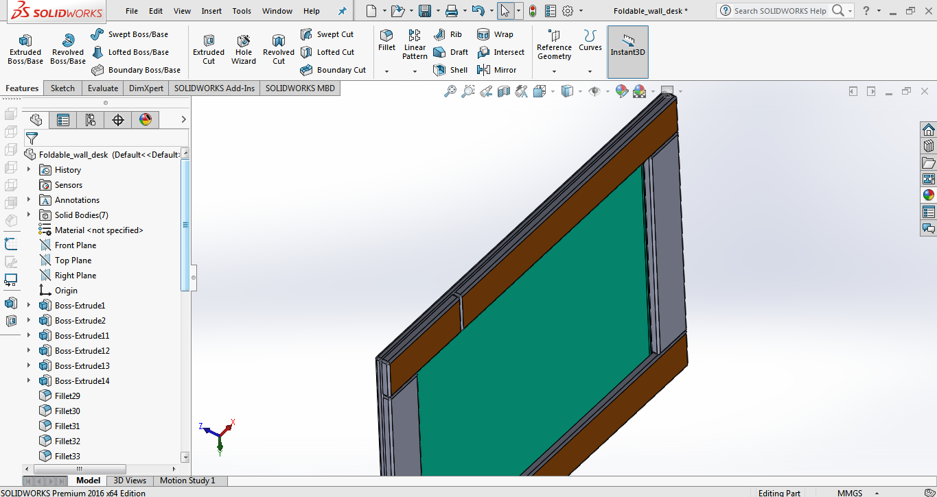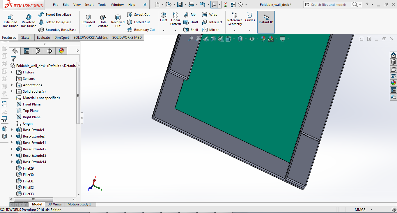 This week's assignment was to 'make something big'. For that I worked on a foldable room study desk that can be folded and hanged on the wall when not in use and ufolded when needed. Hangng it on the wall would creat space around the room, while at the same time serve as a house decor. This is because one side of it would have a mirror or an image to decorate the room.