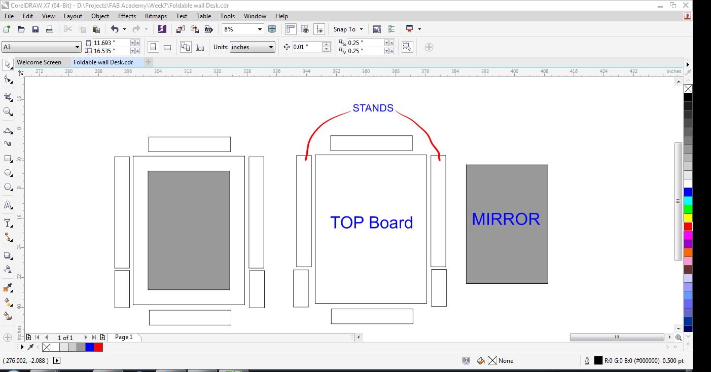 After choosing the scale I got all the files on corel draw and started arranging them in preparation for laser cutting.