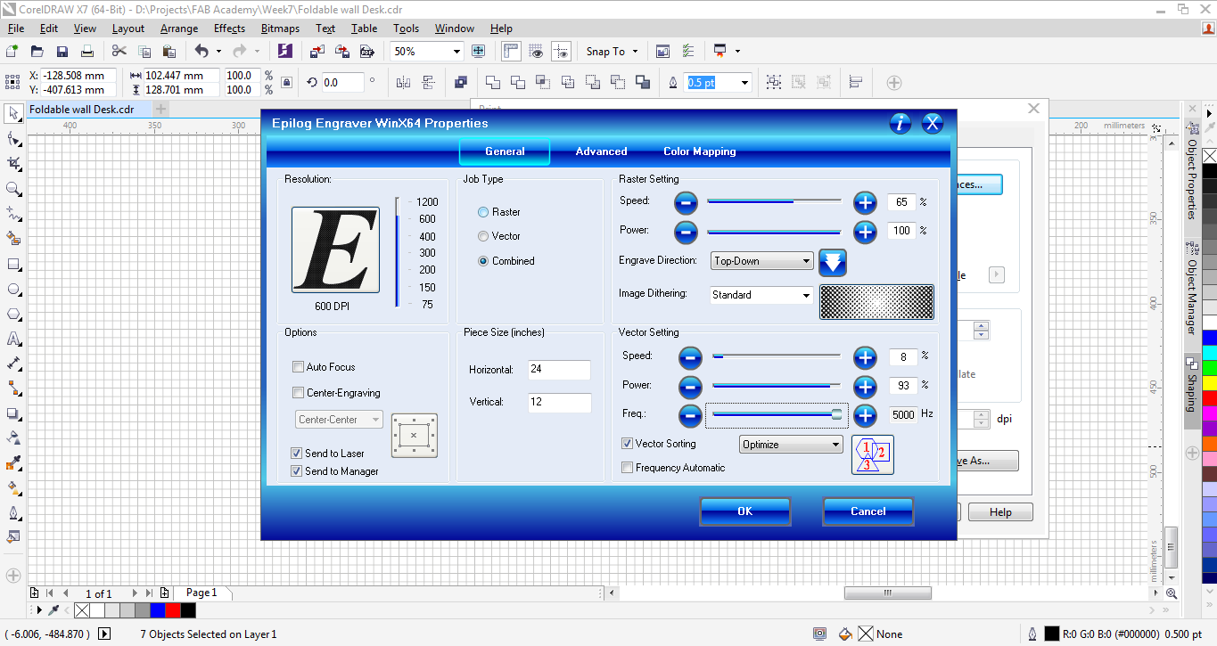 So I scaled down my corel draw desing by 90% to a smaller size that could be cut fast but at the same time prove the integrity of the design.