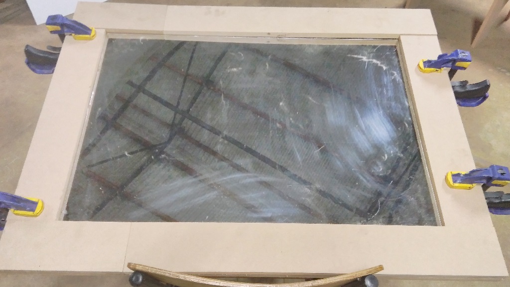 The top and bottom frames are parmanent to firmly hold the mirror in place. I therefore stuck them up with wood glue and gave them a moment to stick. I used machining clamps to apply some pressure