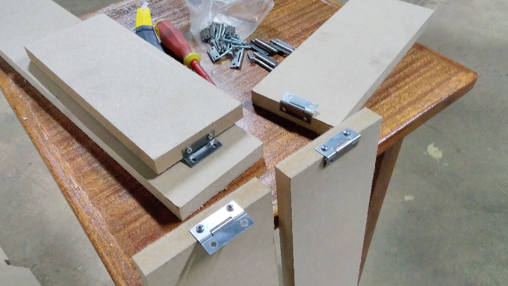 I then used some hinges to stick the stands to the top piece. and eventually put all the pieces together, both the movable parts and the parmanently locked ones.