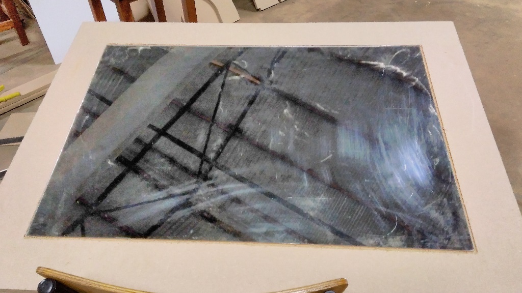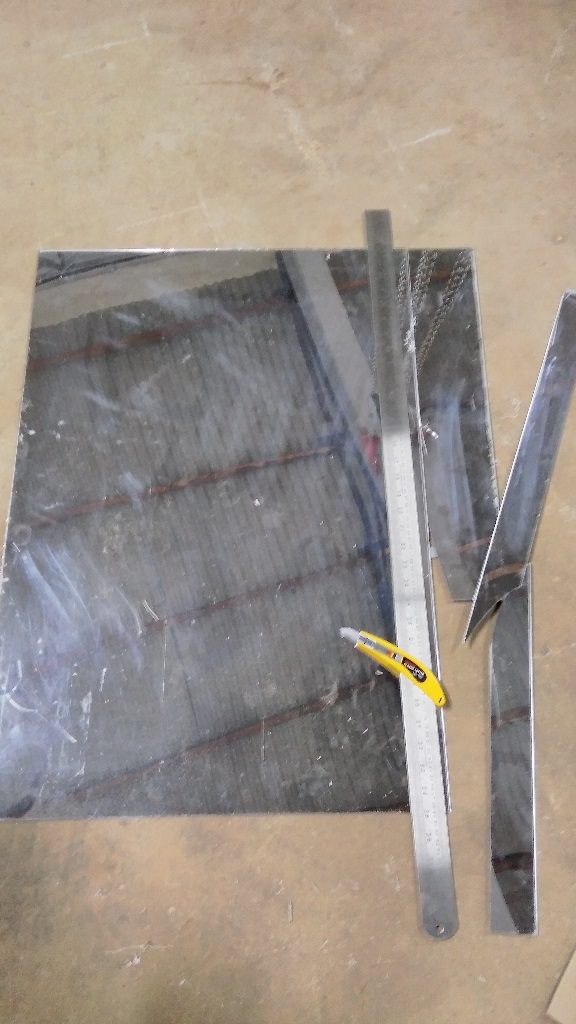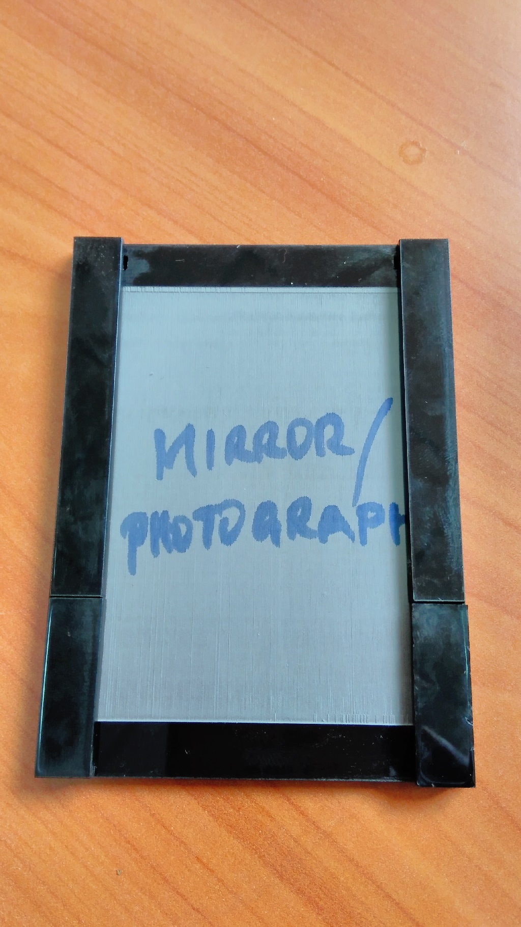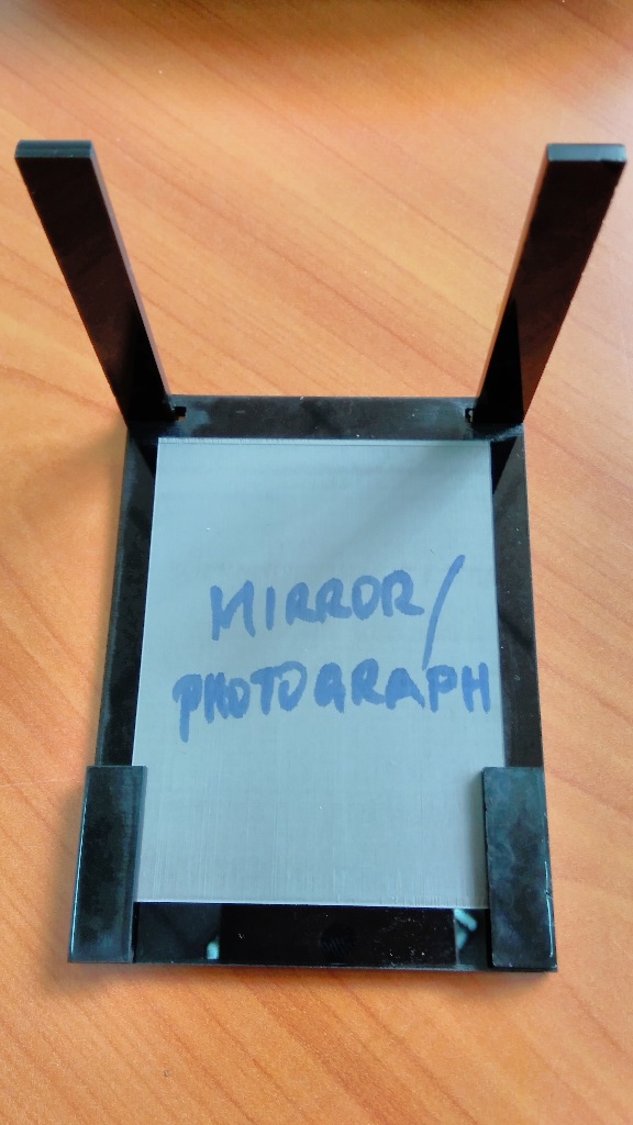 I started working on this part by preparing the mirror that has to be mounted at the center of the desk. I used an acrylic mirror, so it was quite easy to trim it to size using a cutter and a metalic ruler.After that I mounted it on the top board.