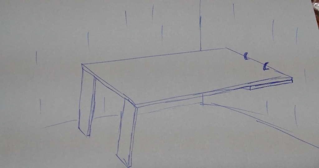 I first did a concept sketch of the desk oon a paper efore designing it on software