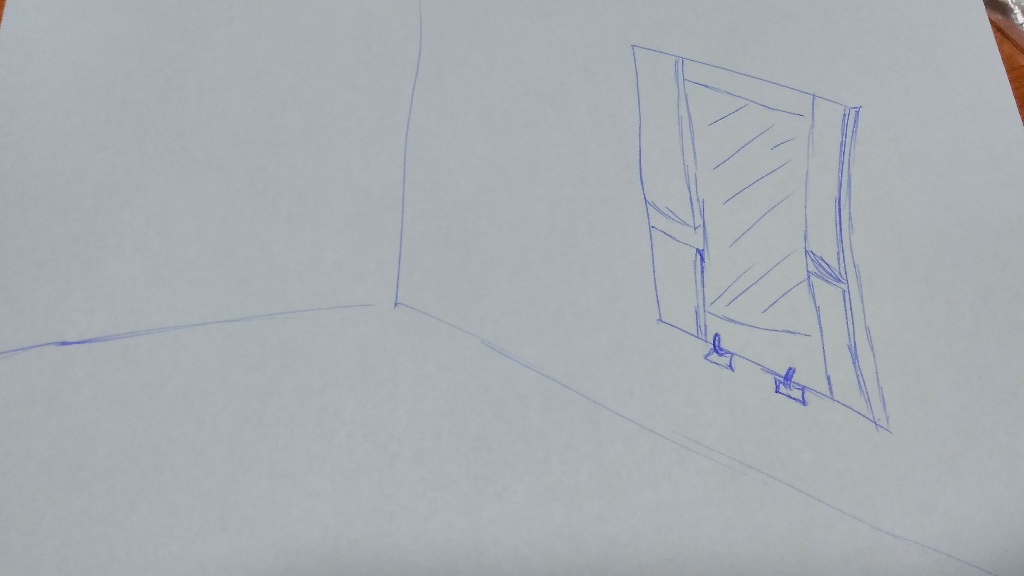 Eventually I had a study desk that could be hanged on the wall with hooks and a beautiful mirror on it.