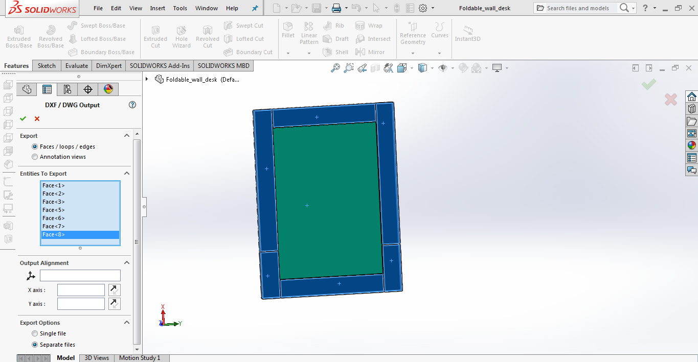 ENTITIES TO EXPORT (Click on the faces that you want to export)