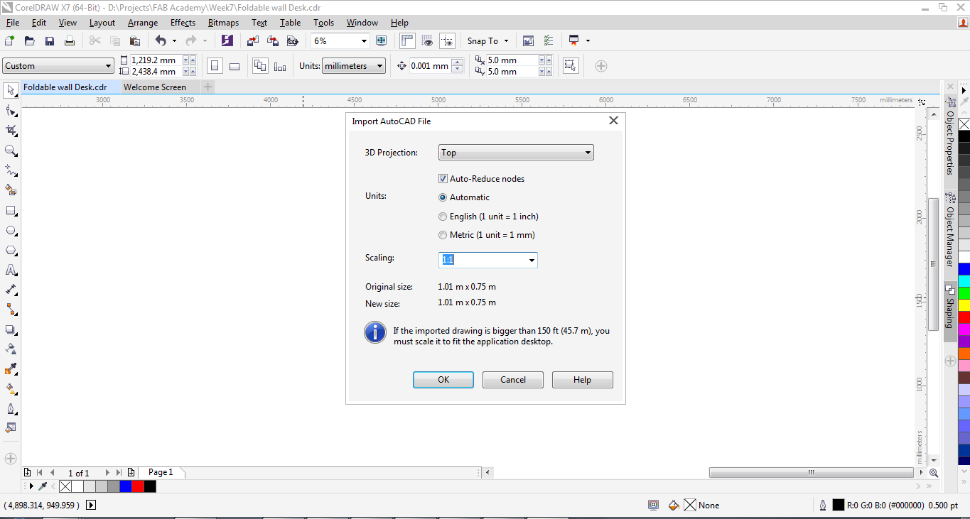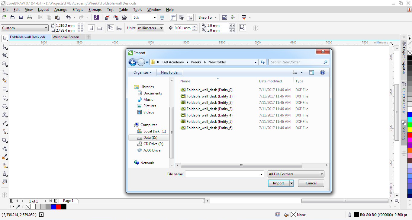 In order to get it into Corel Draw, I had to import the dxf files to corel draw. This is the procedure;