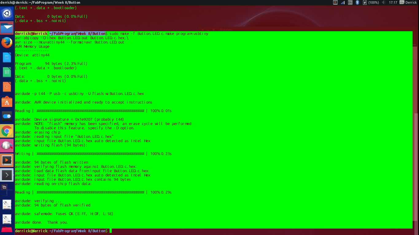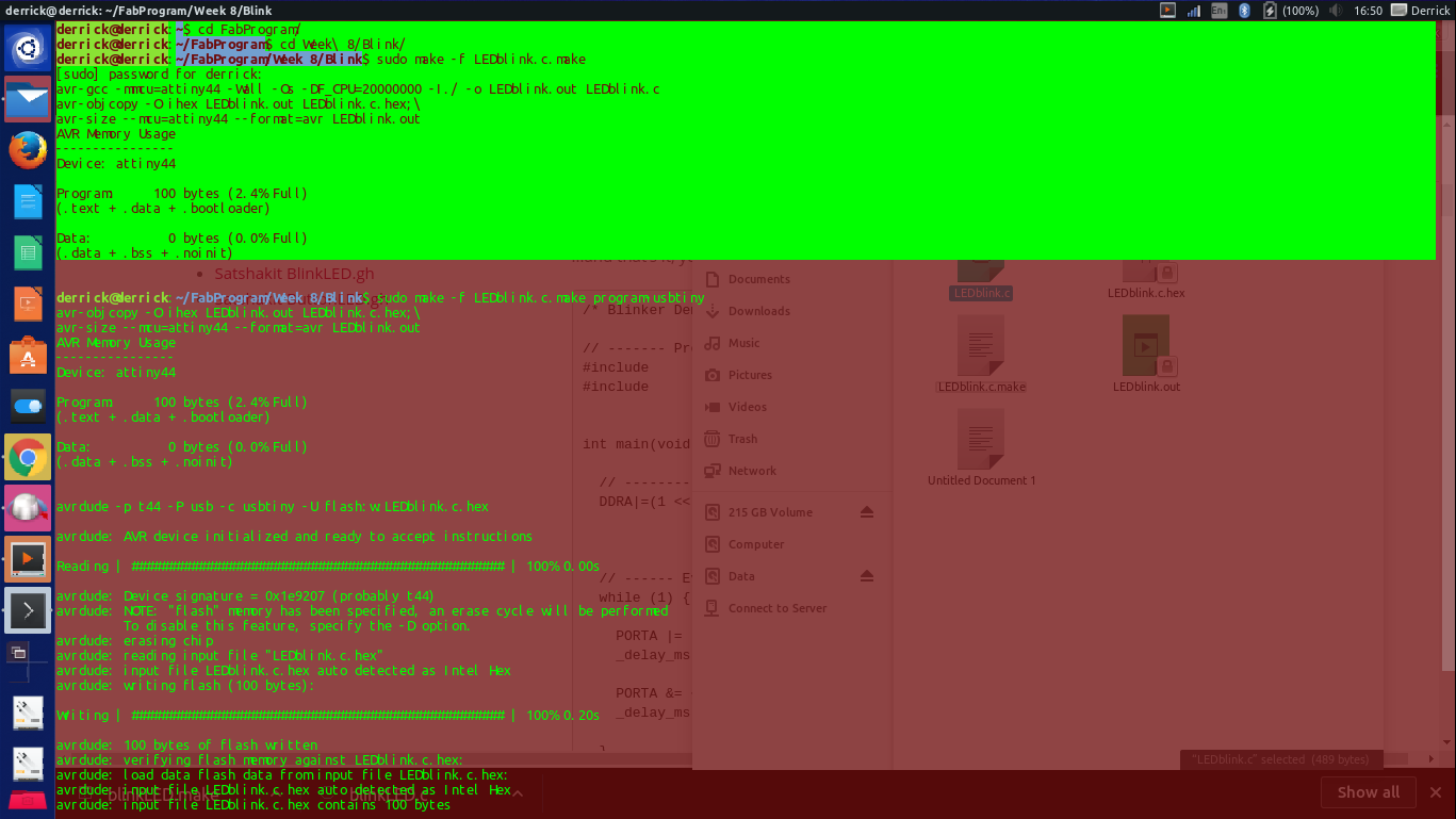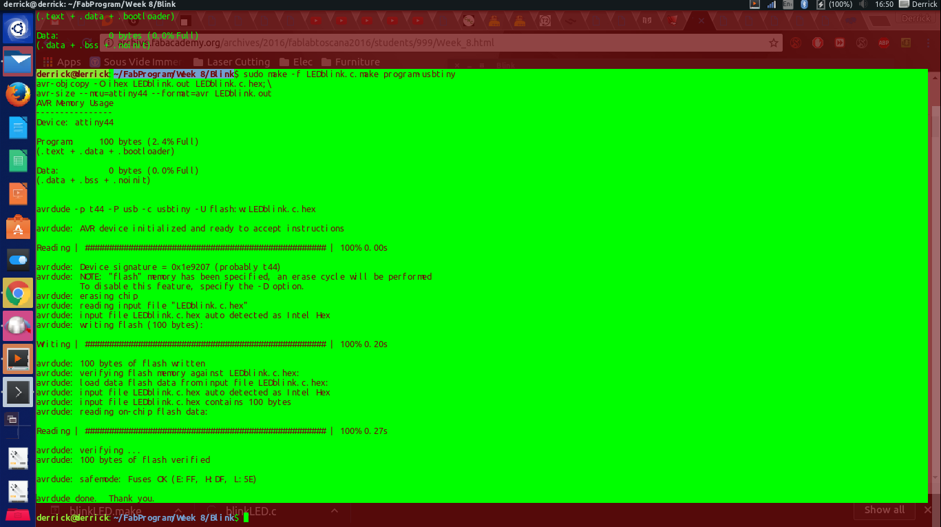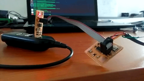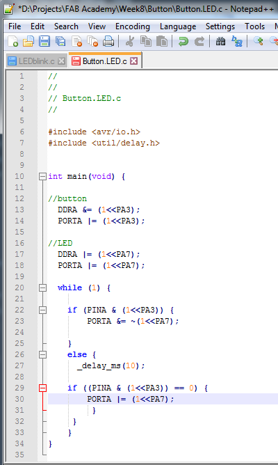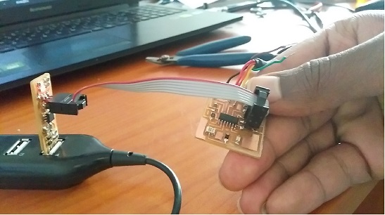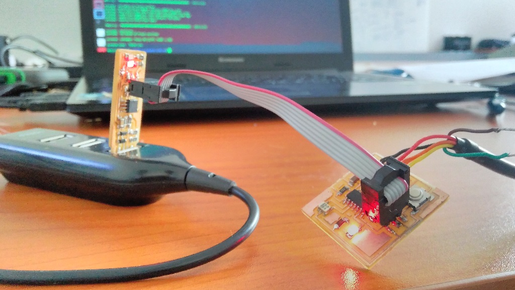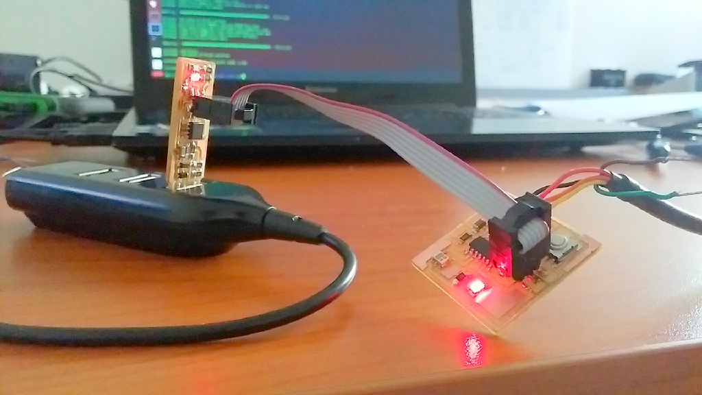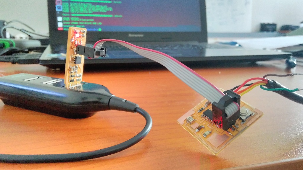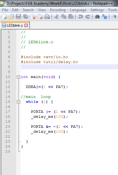 For this process, it is necessary to have a programmer. Thanks to the work done during Week4, this part was already sorted and I had a working FABISP. I prepared a short program to blink the LED on the board.