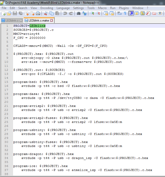 I then downloaded Neil's make file and edited it under PROJECT to indicate LEDblink