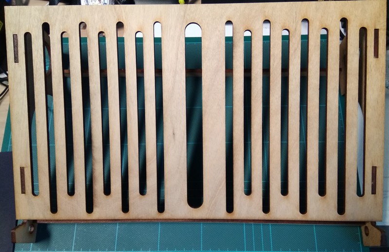 On the second attempt, once again I only cut out the legs and the supports of my laptop stand without the top. (With actual physical thickness of the same stock of plywood measured with a vernier Caliper- t=4.65mm. But again the physical fitting is still very loose. After visually examined the slots created without really taking any measurement, I proceed for my 3rd attempt to cut out the entire laptop stand with the material thickness set to t=4.45mm. By luck the entire structure fitter perfectly tight. The three attempts were done without the consideration and knowledge of kerf or whatsoever but solely with trial and error and reduced the drawing thickness of the plywood parametrically by about 0.2mm.