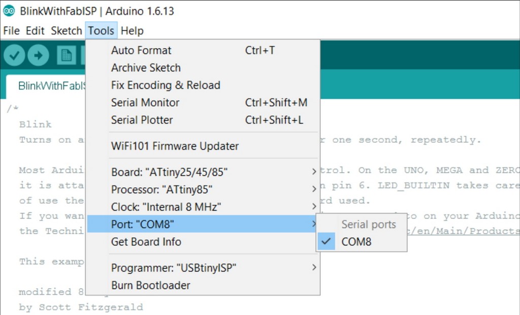 To begin with, I started by configuring my USBTinyISP as my progammer as shown in the following: