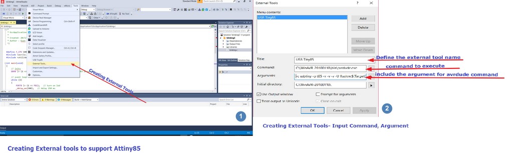 For the very first time, I build my solution and upload the hex file generated at the back ground by Atmel Studio using the following steps: